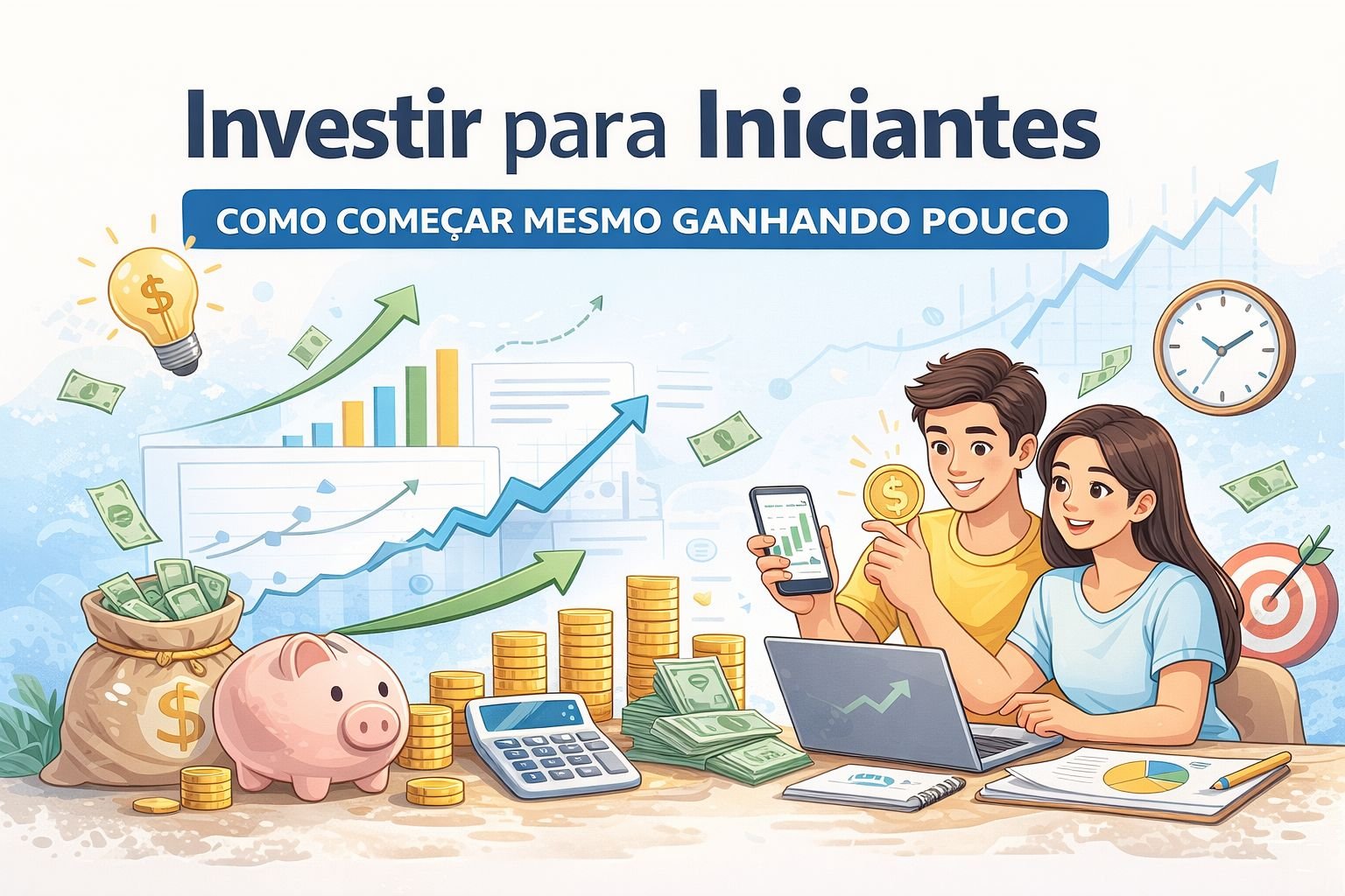 Neste guia você vai entender os primeiros passos para começar a investir, quais são os investimentos mais comuns para iniciantes e como evitar erros que podem atrapalhar seus resultados.